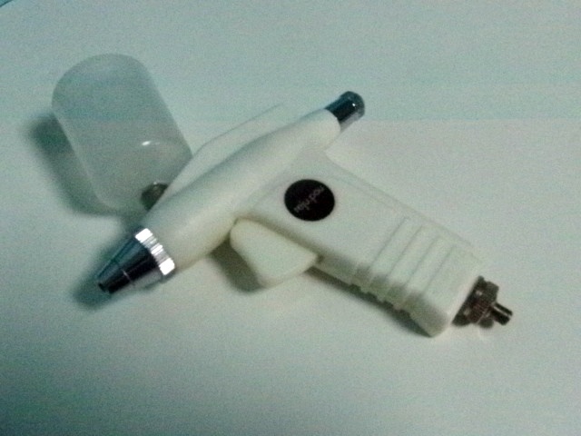 自分は造形も趣味なので、最初にこのシステムを見たとき、「ああ、塗装用のエアガンを炭酸ガスで吹くだけか」という印象のみでした。