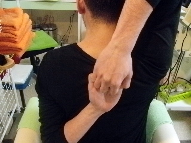 ちょうど寝違えたような症状が2,3日前にあり首の伸展動作と左回線がつらいとのこと。