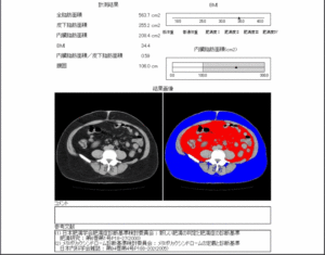 CTスキャンによる腹部断層画像及び脂肪面積計測結果 43歳 女性 157cm